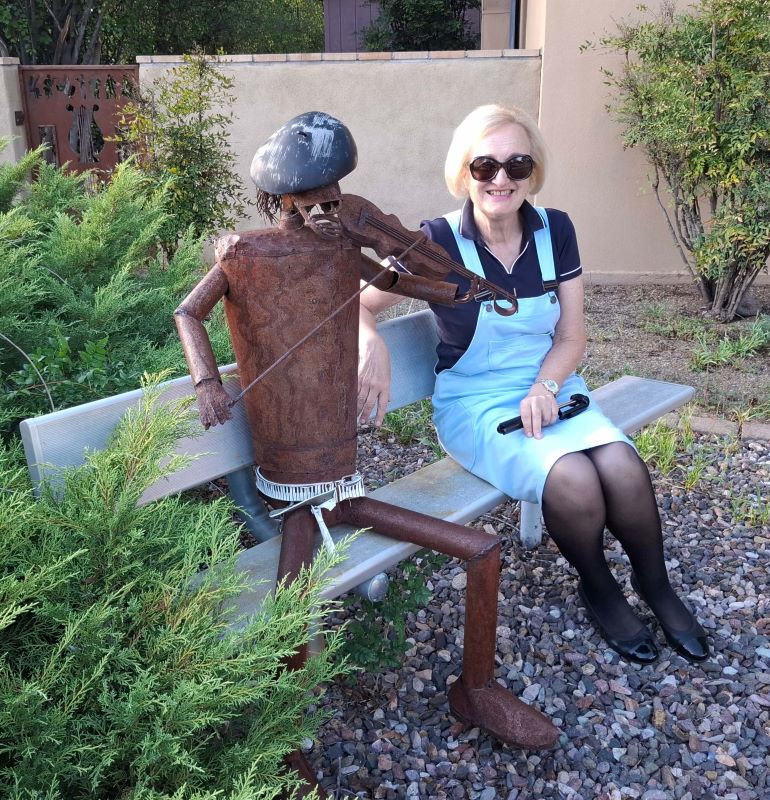 The town has a school, a small theater — whose poster announced a Bach concert — and a museum that also features exhibits about the Bercich family. The museum is located in an old school building, in front of which stands a plaque noting that in 1912, the state of Arizona granted women the right to vote. The first elections were held in 1915 in that very school, when two women voted for the first time: Mary Kane and Amalia Valenzuela.