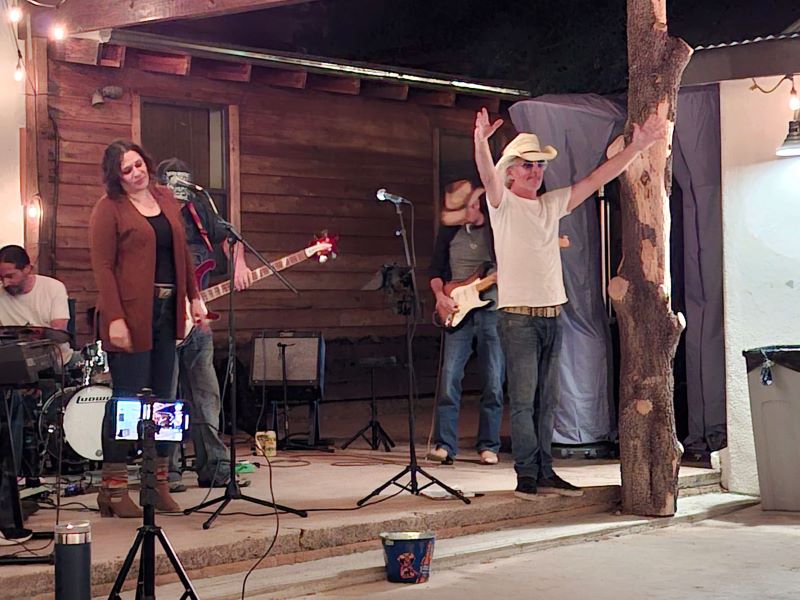 Community life revolves around the backyard of a small bar, a beloved gathering spot for all generations — even the dogs have their usual places there. On weekends, the bar hosts live music. I had the chance to hear the band Dust from Tucson, which skillfully blends honky-tonk soul with a modern twist. Inspired by both classic and contemporary artists, they play upbeat, rhythmic songs filled with energy, prairie sounds, and the timeless spirit of the desert.