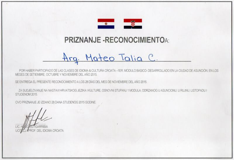 My name is Mateo Talia and I was born in Asunción, Paraguay in 1957, as a descendant of Matteo Talia, a Croatian immigrant who would have arrived in Paraguay around 1885. I do not know the exact date of his arrival in these lands. My friends, Croatian descendants, also do not know the date of arrival of their ancestors in this country, since they did not talk about their past and, therefore, there are no records about them.