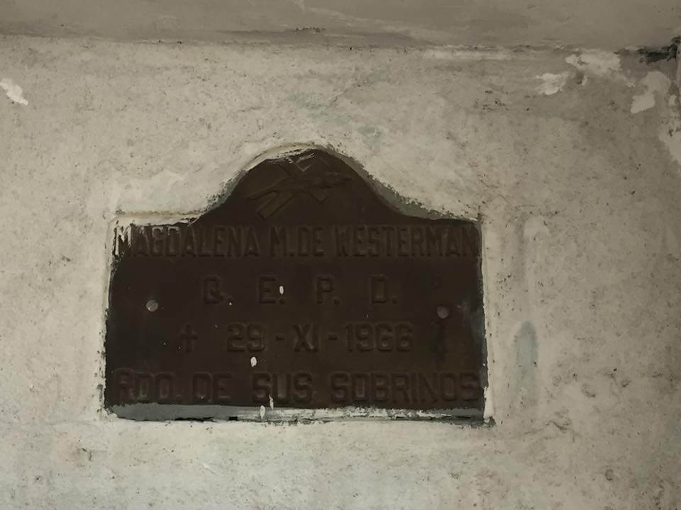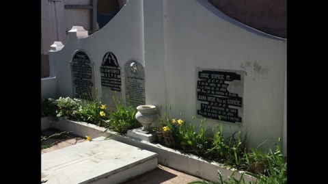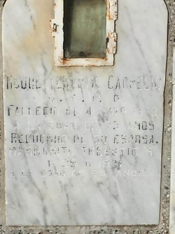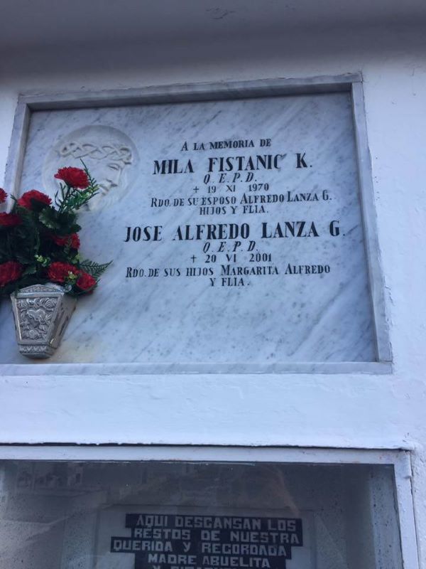 Na nadgrobnom spomeniku piše: Ruegan por ti en tu eterno descanso. (Mole za tebe u tvom vječnom počinku). Potpisani su suprug i sin