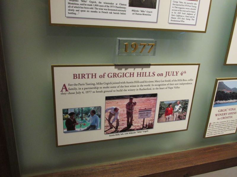 Utemeljitelj i vinar emeritus, član Kuće slavnih vinara, dobitnik nagrade James Beard, član Vintners Hall of Fame Miljenko “Mike” Grgich prvi je put stekao svjetsko priznanje kada je Chardonnay koji je napravio 1973. pobijedio na degustaciji u Parizu 1976., pobijedivši najbolje iz Francuske. Ovo kušanje pomoglo je razbiti mit da samo francusko tlo može proizvesti najbolja svjetska vina i privući međunarodnu pozornost na vina iz doline Napa. Mike se zatim udružio s Austin Hillsom kako bi otvorio njihovu obiteljsku vinariju 1977. godine.