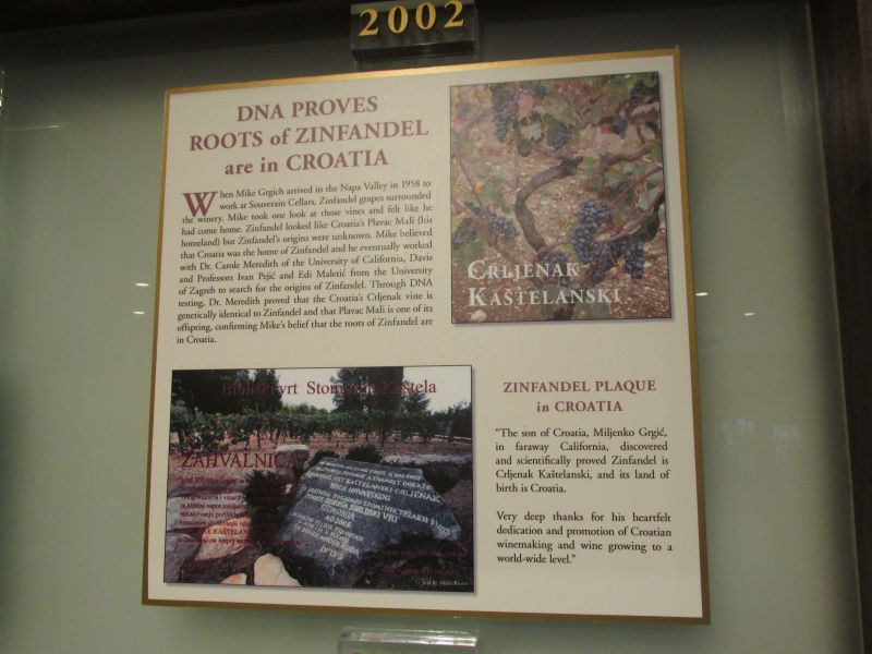 Na izložbi je bio prikazan Chardonnay iz 1973.godine koji je proizveo Miljenko Grgich i koji je pobijedio u Parizu 1976., kao i mali kartonski kofer kojim je Miljenko doputovao iz Hrvatske i u kojemu je donio knjige o vinarstvu i njegovu poznatu beretku.